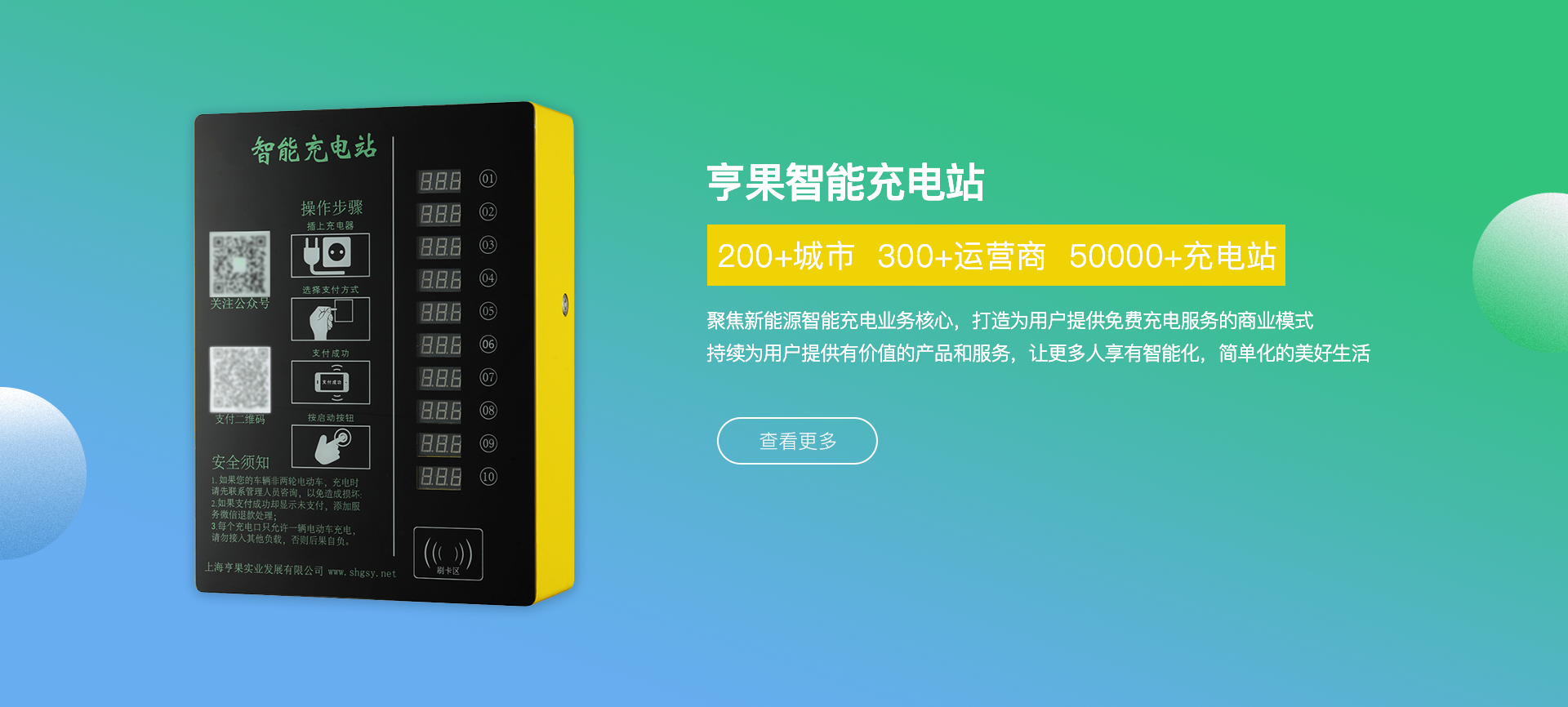 公司總部位于上海市青浦區(qū)趙巷新城經(jīng)濟(jì)開發(fā)區(qū),專注于新能源智能充電操作系統(tǒng)、智能電動車充電樁、充電樁行業(yè)運營管理平臺等多類相關(guān) 產(chǎn)品的研發(fā)、設(shè)計、銷售和運營,產(chǎn)品現(xiàn)已廣泛應(yīng)用于國內(nèi)各城市居民社區(qū)、高校、及商業(yè)綜合體車輛聚集區(qū)域及市政配套領(lǐng)域。